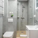 Sky Apartments Poznan tilbyder værelser med et fladskærms TV med satellitkanaler, et tekøkken og separat toilet. Et badeværelse består af en bruser og håndklæder.